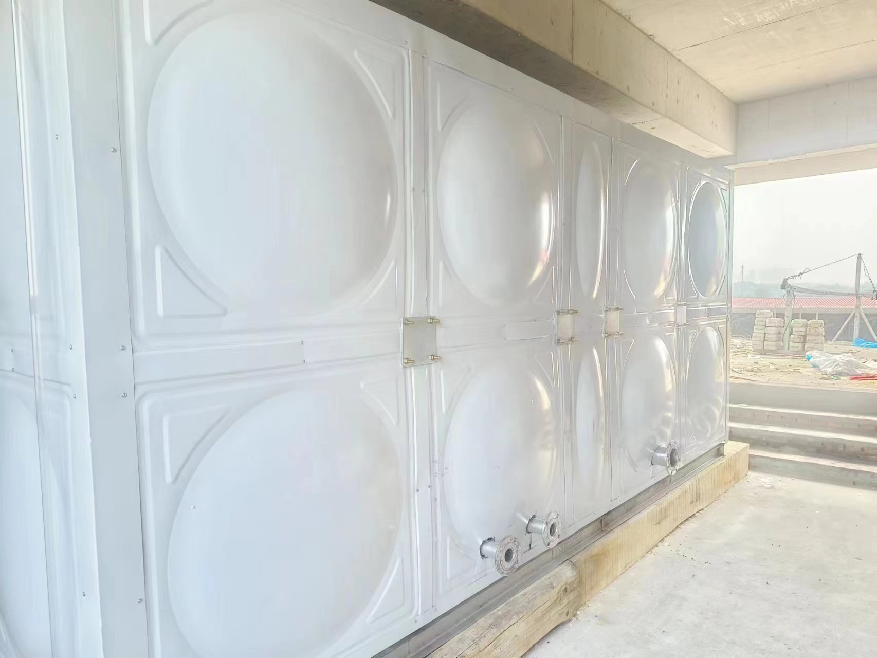 我司承接的山西省晉中市平遙縣達蒲小學玻璃鋼聚氨酯彩鋼板保溫水箱已經安裝試水完成。作為消防水箱,安裝在樓頂。水箱安裝前是需要提前做基礎的,每個不同規格的玻璃鋼水箱都有不同的基礎要求的。玻璃鋼水箱底部應設置高為50cm混凝土或者磚砌的基礎,玻璃鋼水箱周圍和頂部應該留有≥50cm的安裝與檢修空間,方便安裝人員檢修以及后期玻璃鋼水箱清洗與維護等。