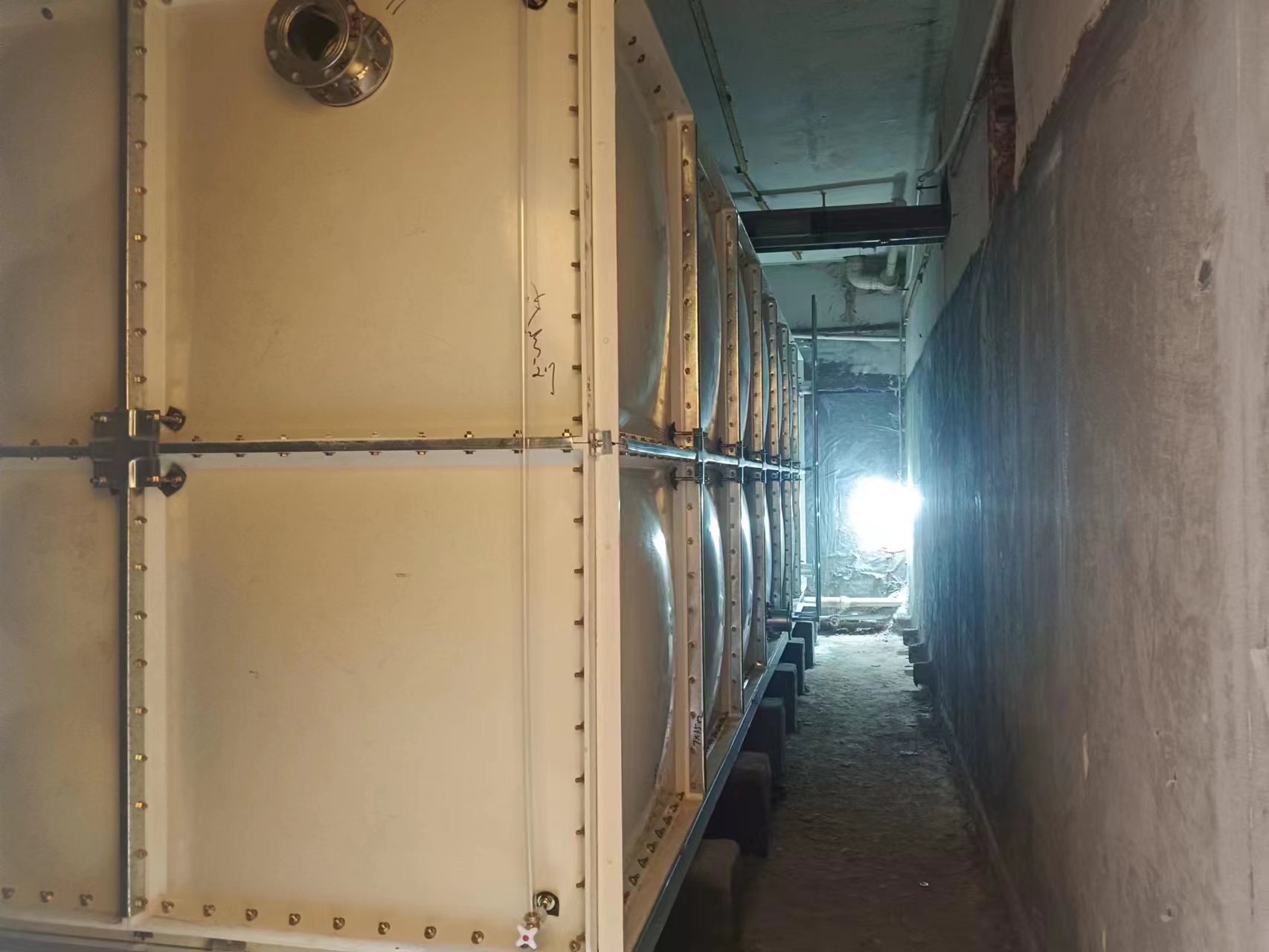 我司承接的陜西省榆林神木市億萊策大酒店兩臺SMC玻璃鋼水箱已經(jīng)安裝試水完成。SMC玻璃鋼采用不飽和樹脂,了水質(zhì)清潔衛(wèi)生,質(zhì)量輕、強(qiáng)度高的特性,使得同樣大小、同樣厚度的玻璃鋼板材比鋼板的重量輕了30%左右。模壓成型的方式,增加了抗震、抗沖擊的強(qiáng)度,克服了手糊制品強(qiáng)度不均勻的缺點,提高了耐壓強(qiáng)度和使用壽命。無滲漏,無變形,保養(yǎng)、檢修方便;在有限的空間內(nèi)存放和安裝,很容易擴(kuò)大或更換;現(xiàn)場組裝,定期提供,施工方便。