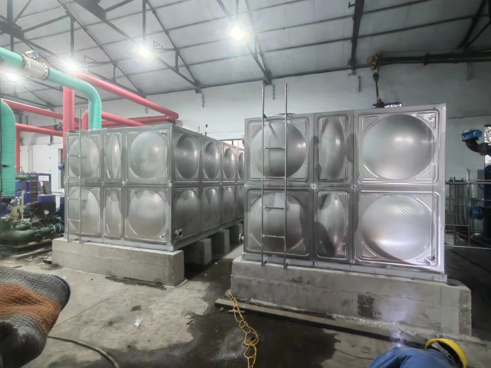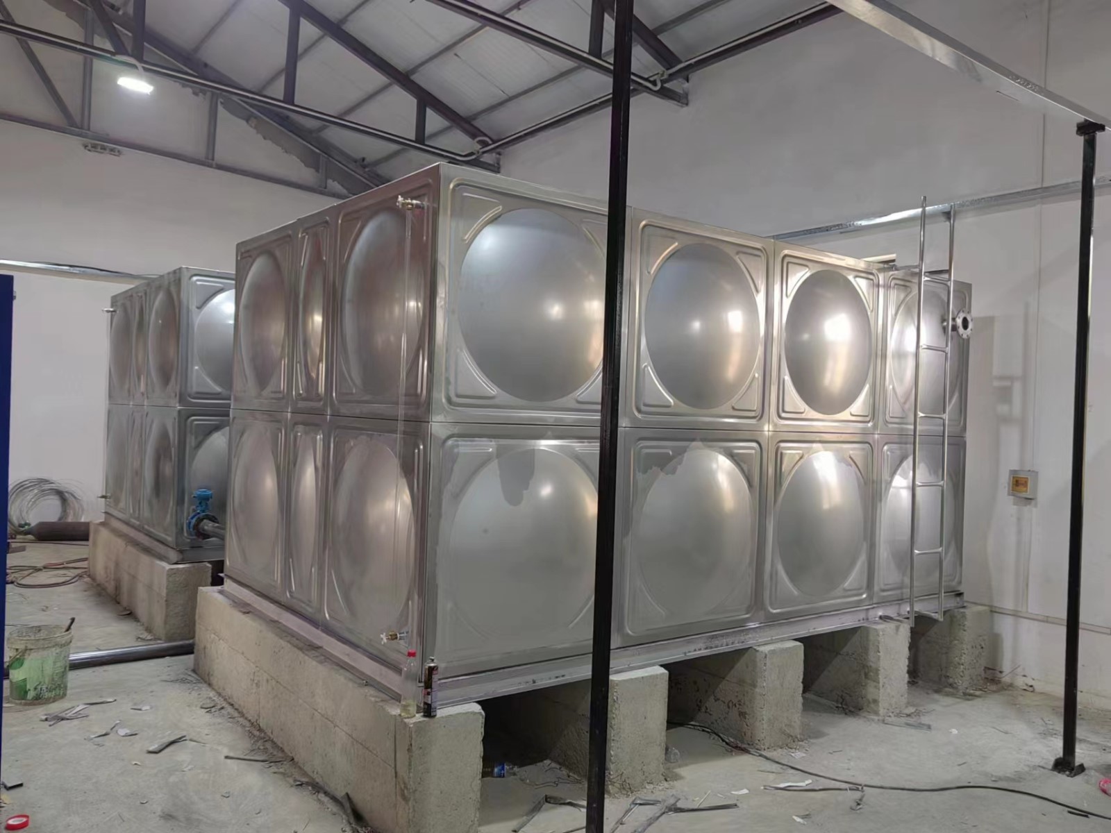 不銹鋼水箱施工方便快捷:標(biāo)準(zhǔn)沖壓板塊1000×1000、1000×500、500×500mm隨意裝配現(xiàn)場組裝焊接,無需吊裝設(shè)備。