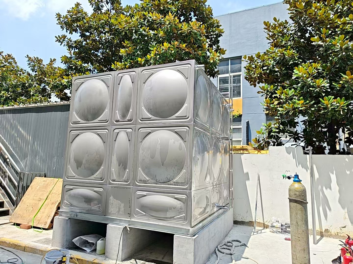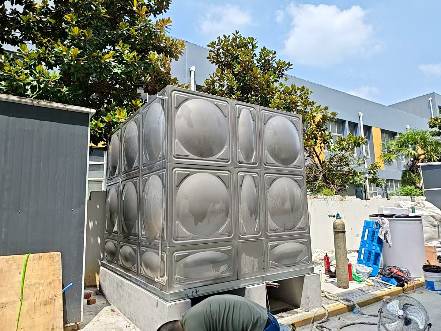 我司承接的南京瀘溪河食品級不銹鋼水箱安裝完成。不銹鋼全焊接水箱為現場組合方式,強度高、密封性好,防止水質二次污染,永不滲漏,重量輕,外觀整潔、光亮、美觀、實用等特點。安裝師傅全力配合并提前安裝試水完畢。得到了客戶的高度認可!